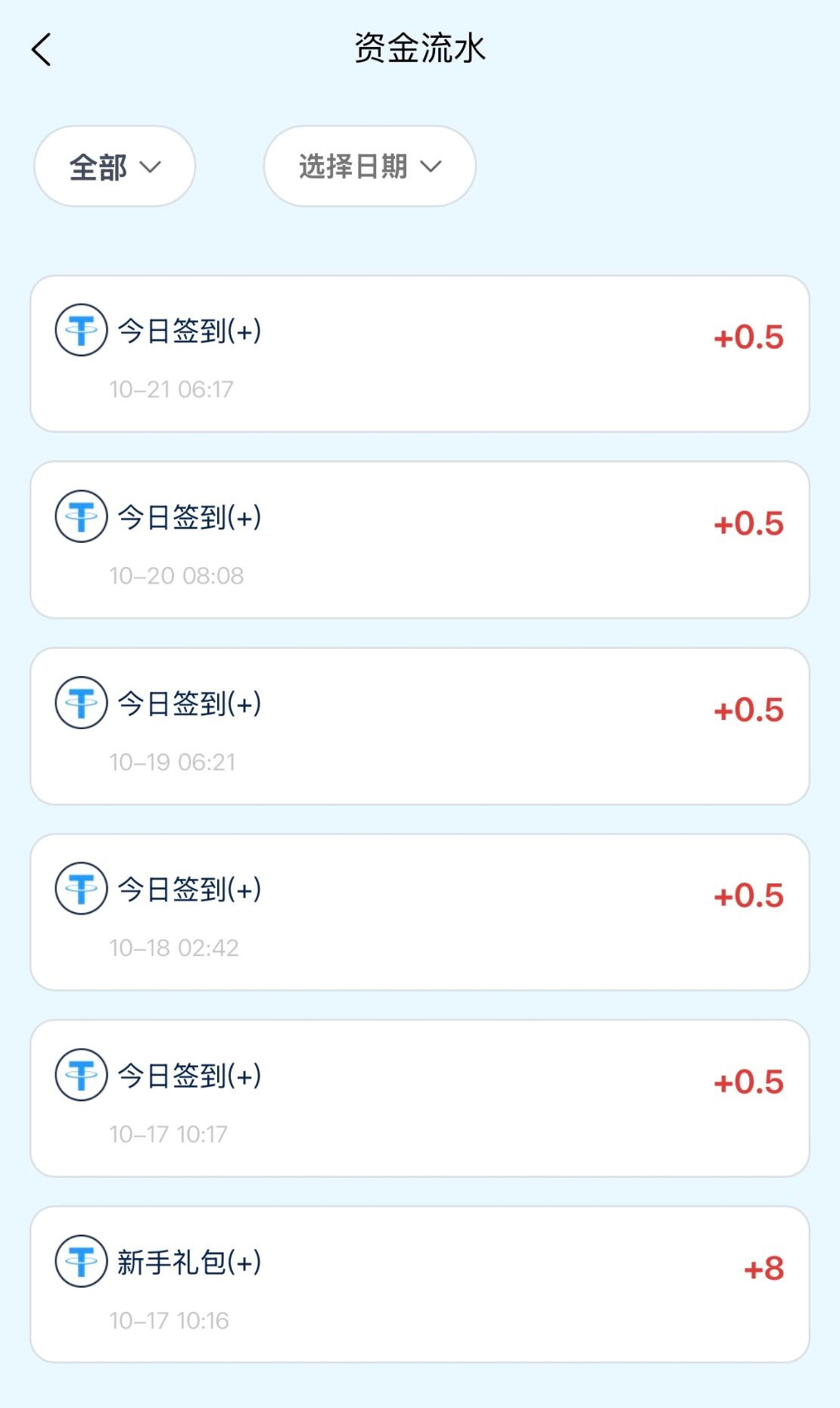 白嫖100,注册送8u签到每天0.5u,10天可以提100