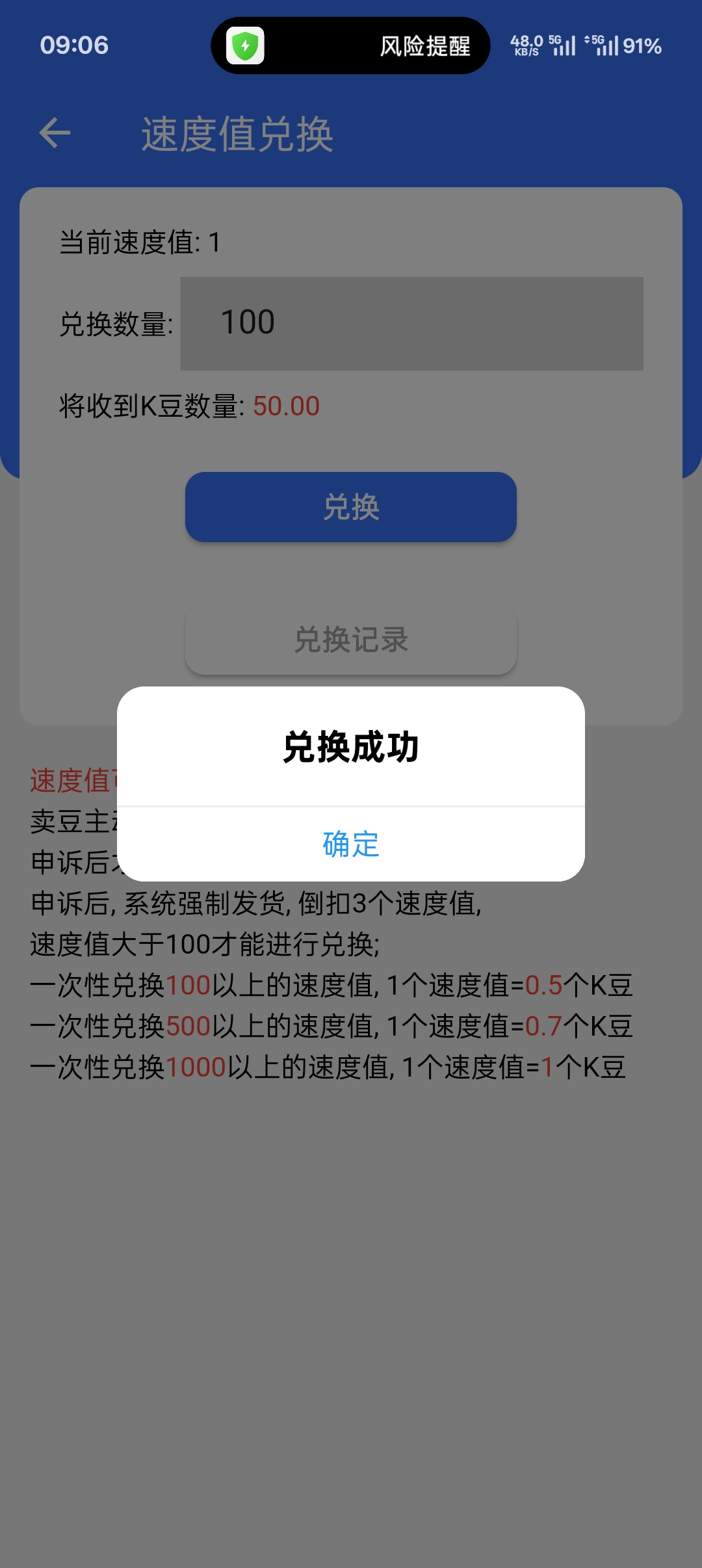 k豆有速度值的去兑换自己看规则