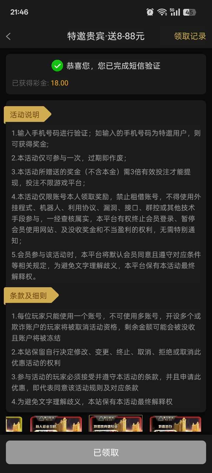 白嫖彩金