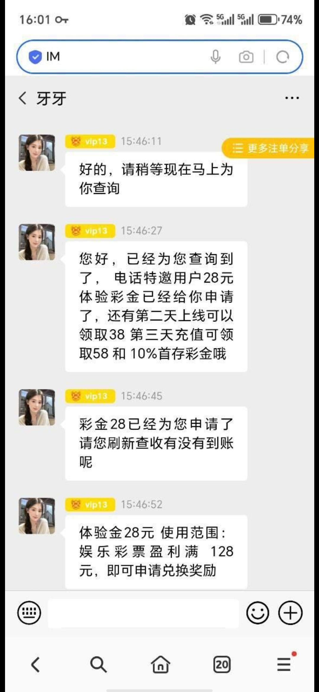 注册联系聊天室客服碰瓷电话彩金,有就有,没有就无视,彩金限制彩票,满128提现!