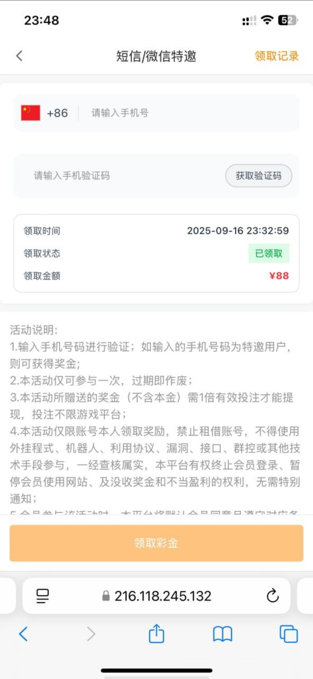 注册在活动页面自行碰瓷短信特邀彩金 具体自测
