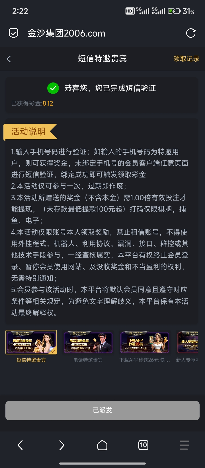 白嫖彩金