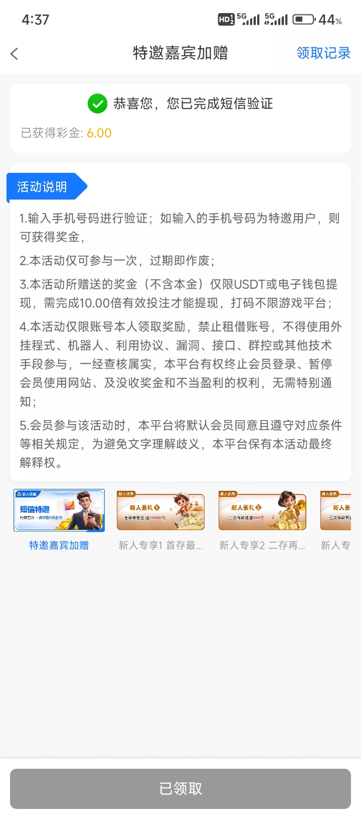 白嫖彩金