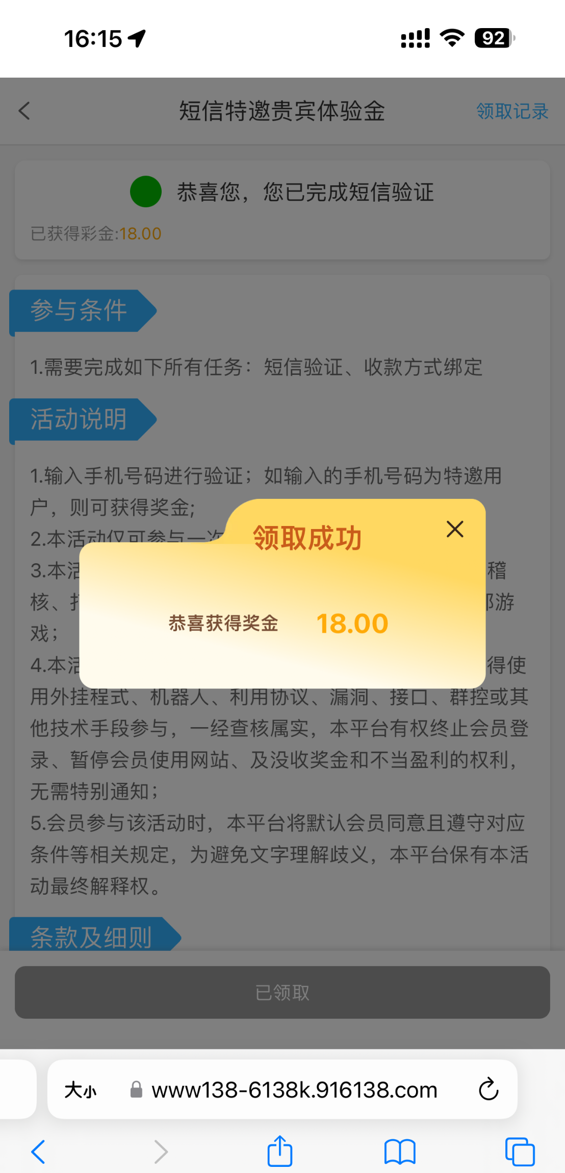 接到电话然后去短信验证18彩金,黑不黑不知道我没打出来,可以去碰瓷一下138.bb
