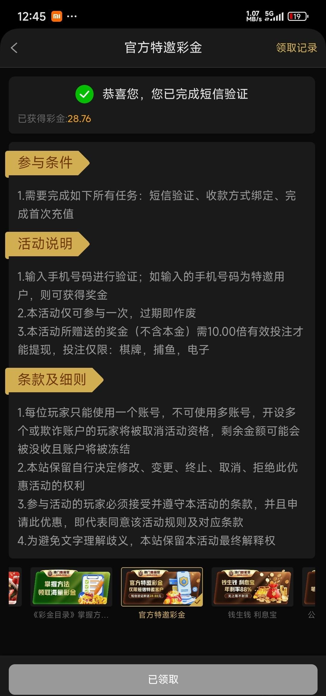 白嫖彩金