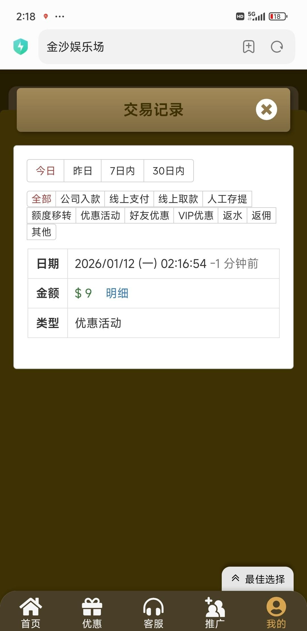 注册一个月了,没充值过,没玩过,下午接到电话,找客服领了9链接5325.com