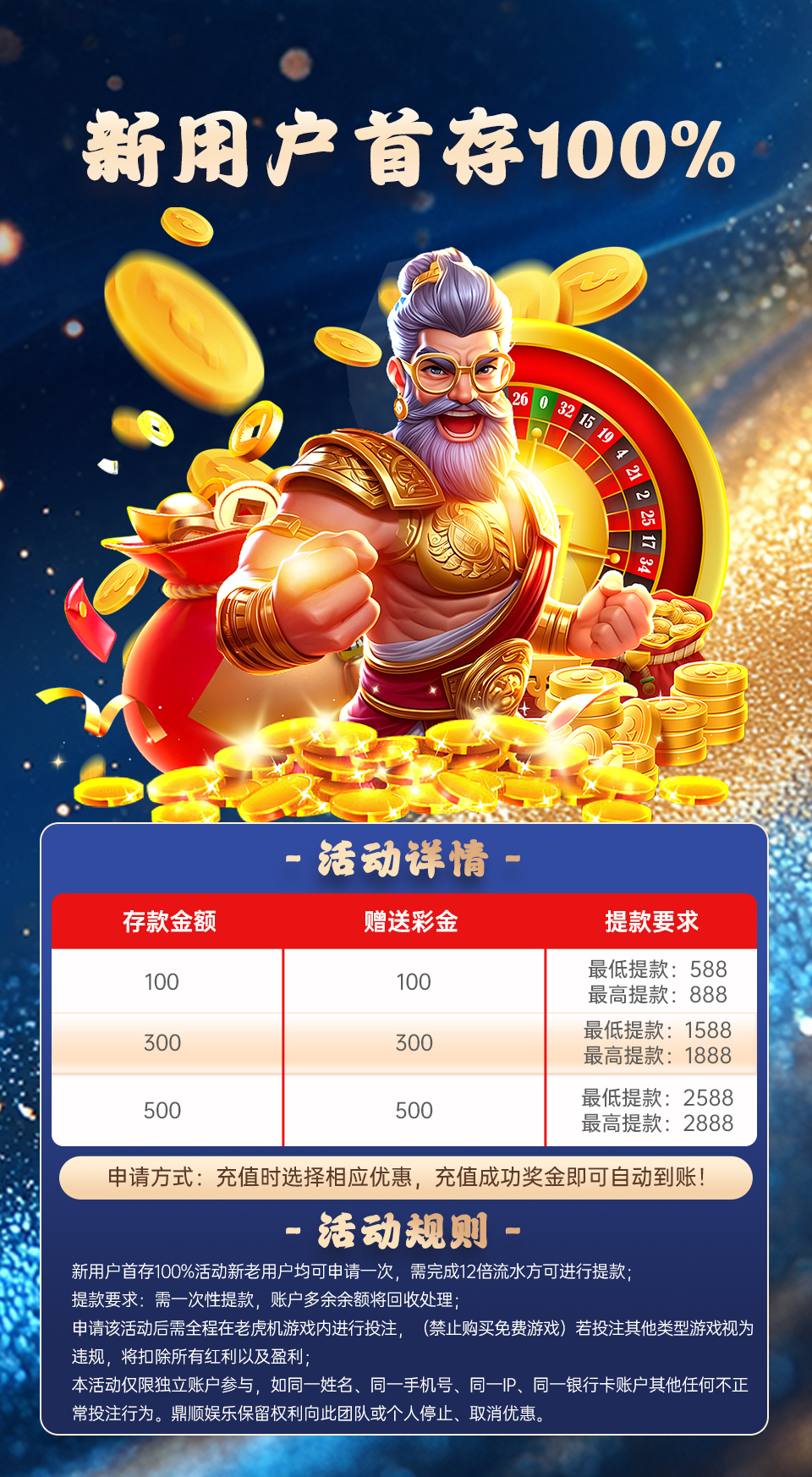 3、该活动仅限投注电子游戏,彩金提款上限103,多余金额需扣除,禁止购买免费游戏,藏分, 互转,违反扣除所有金币;