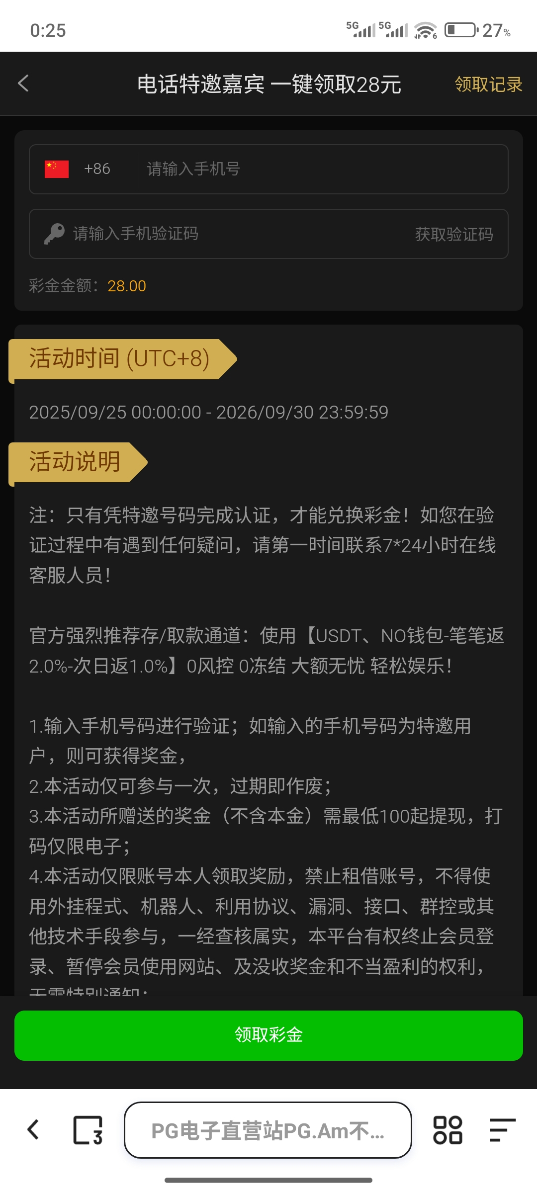 白嫖彩金