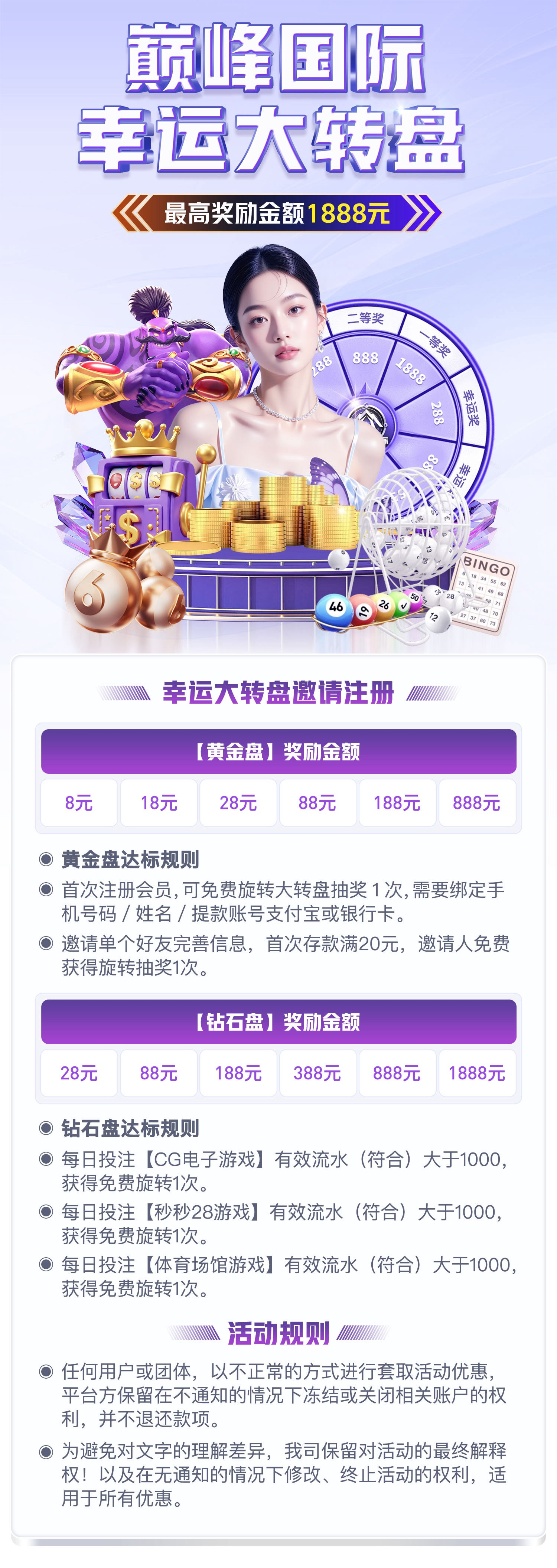 【巅峰国际】新人注册送28-88扶持彩金✅