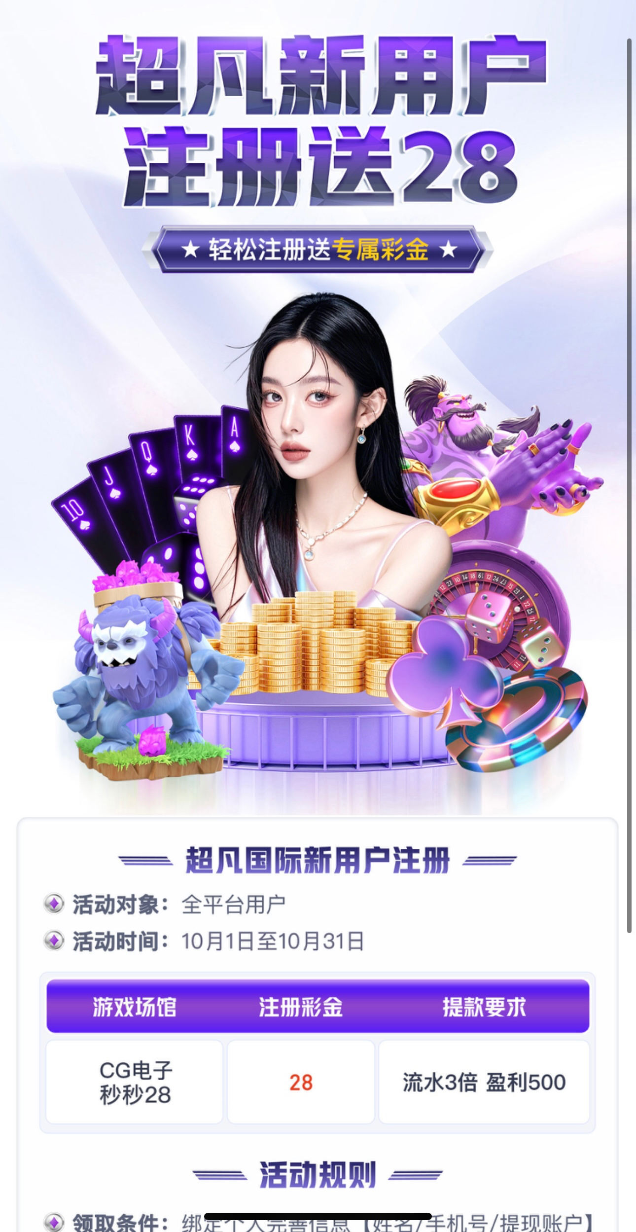 【超凡国际】新人注册免费送28彩金✅