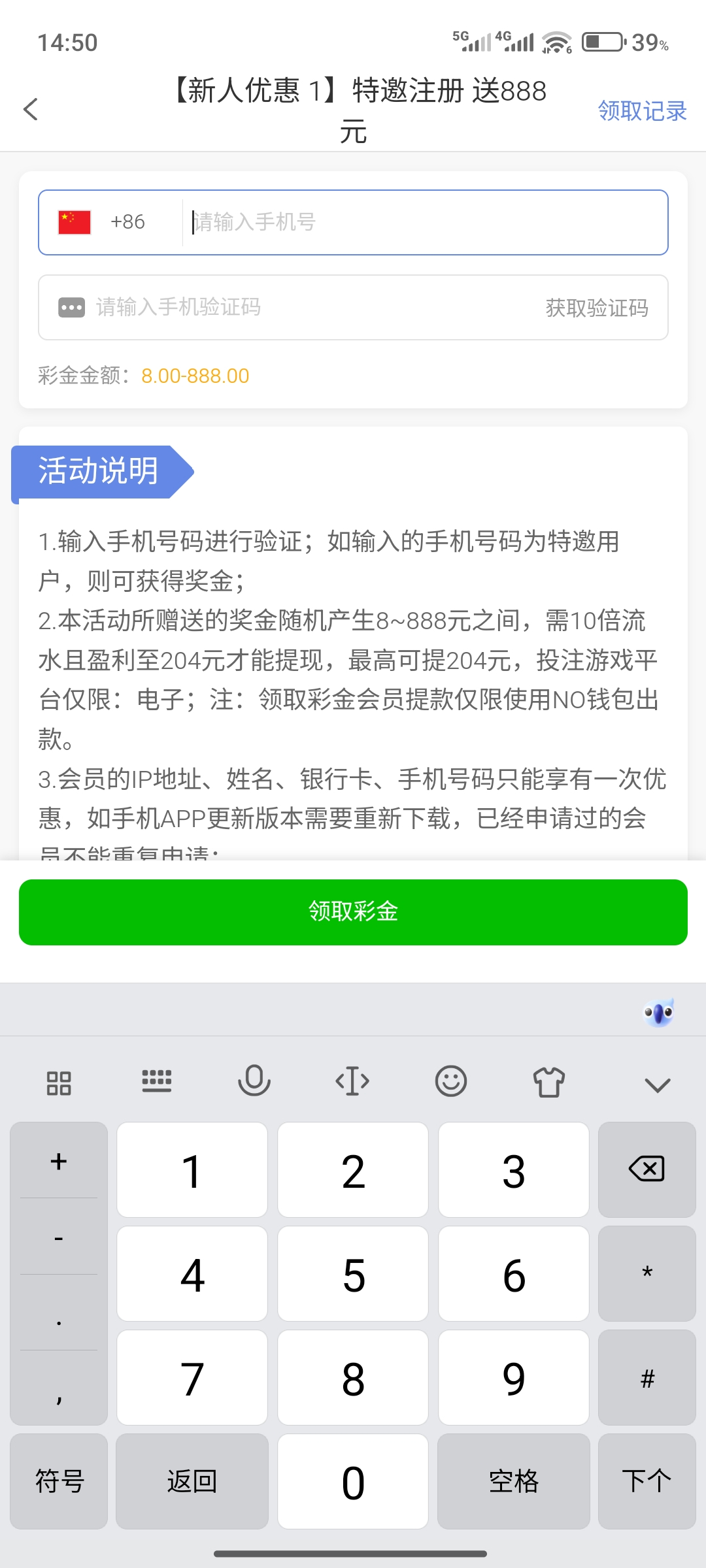 注册特邀手机号码优惠大厅验证派送