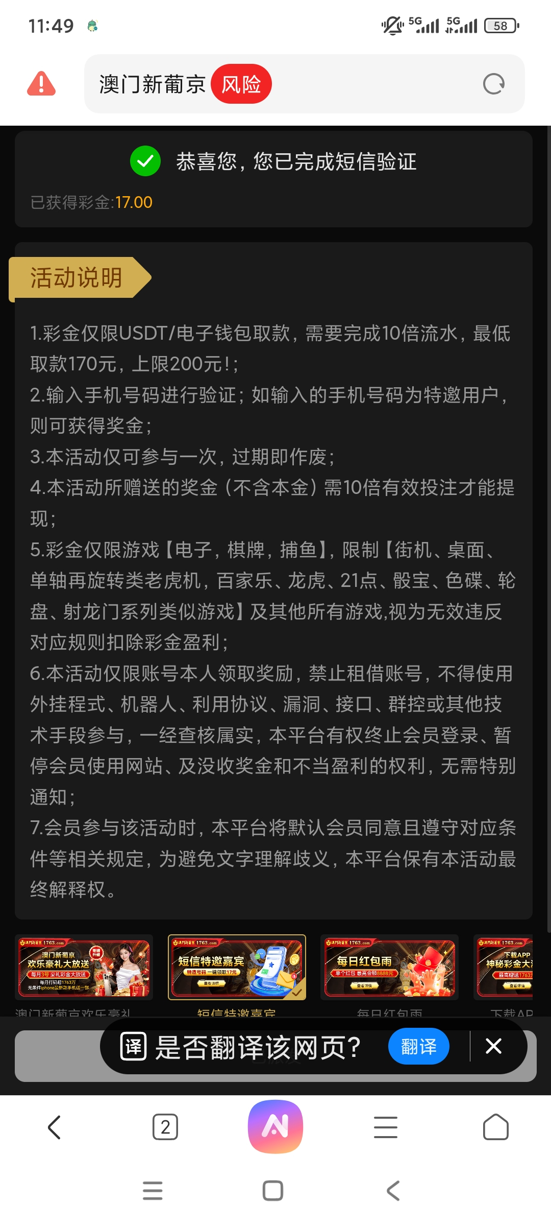 接到电话短信验证领了17,漏接的可以试试