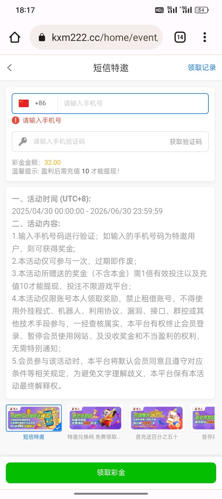 白嫖彩金