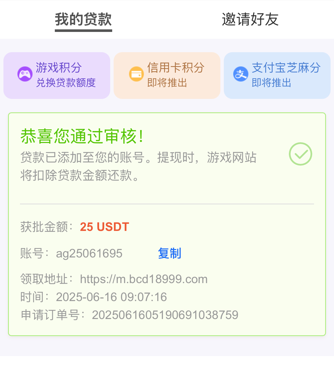 BC贷就相当于一个跳槽金,提供一个你常玩平台的账号密码,让bc审核你的资质,最近半个月内充的越多,打码越多,贷的额度也就越高,这个额度是bc合作的游戏平台给你放额度,游戏也是,你申请哪个平台就在哪个平台里娱乐,你输了就等于还回去了,赢了也就扣除给你的额度,其余盈利部分是正常到账的!