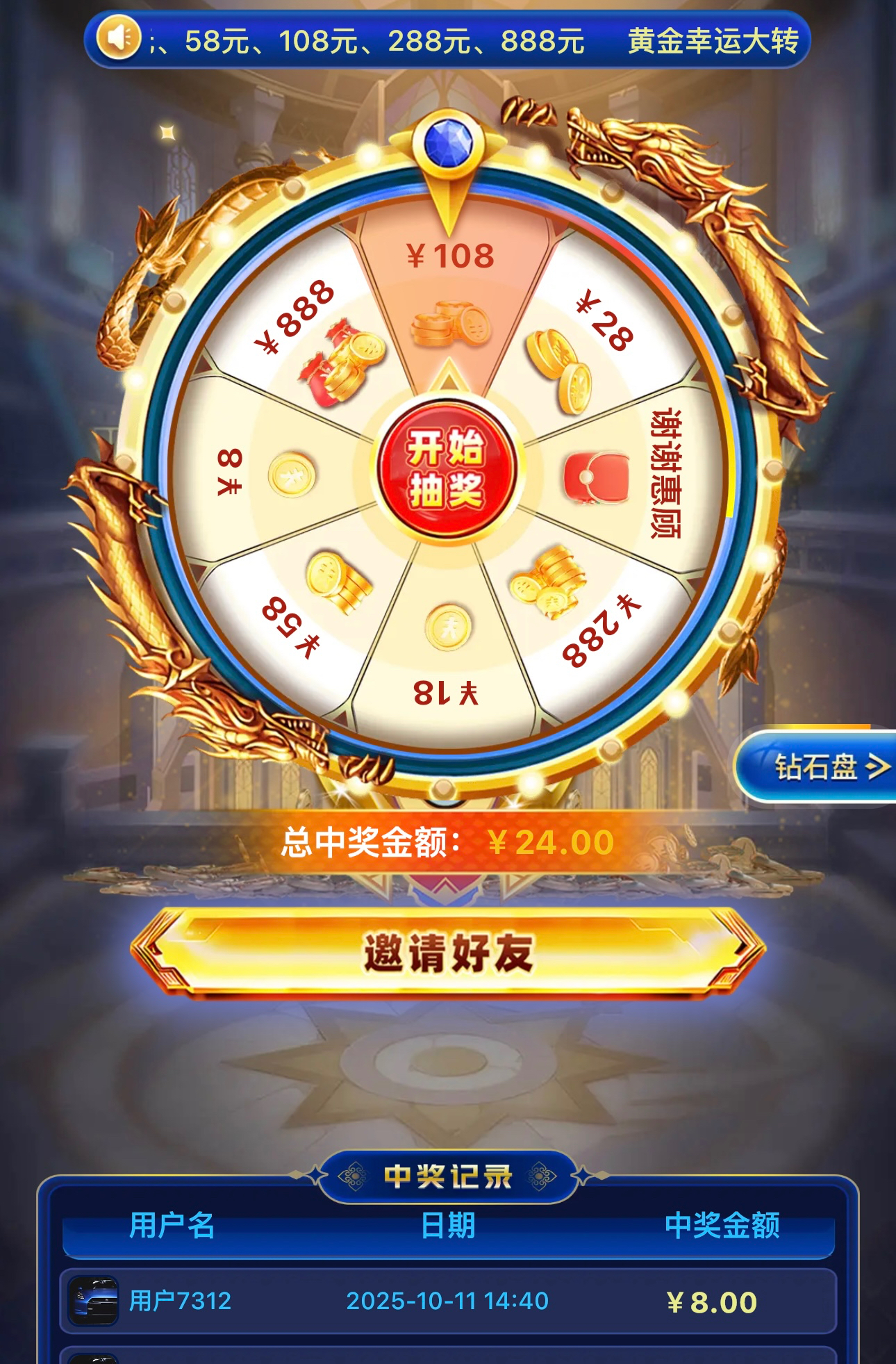 注册之后进入平台点右下角大转盘