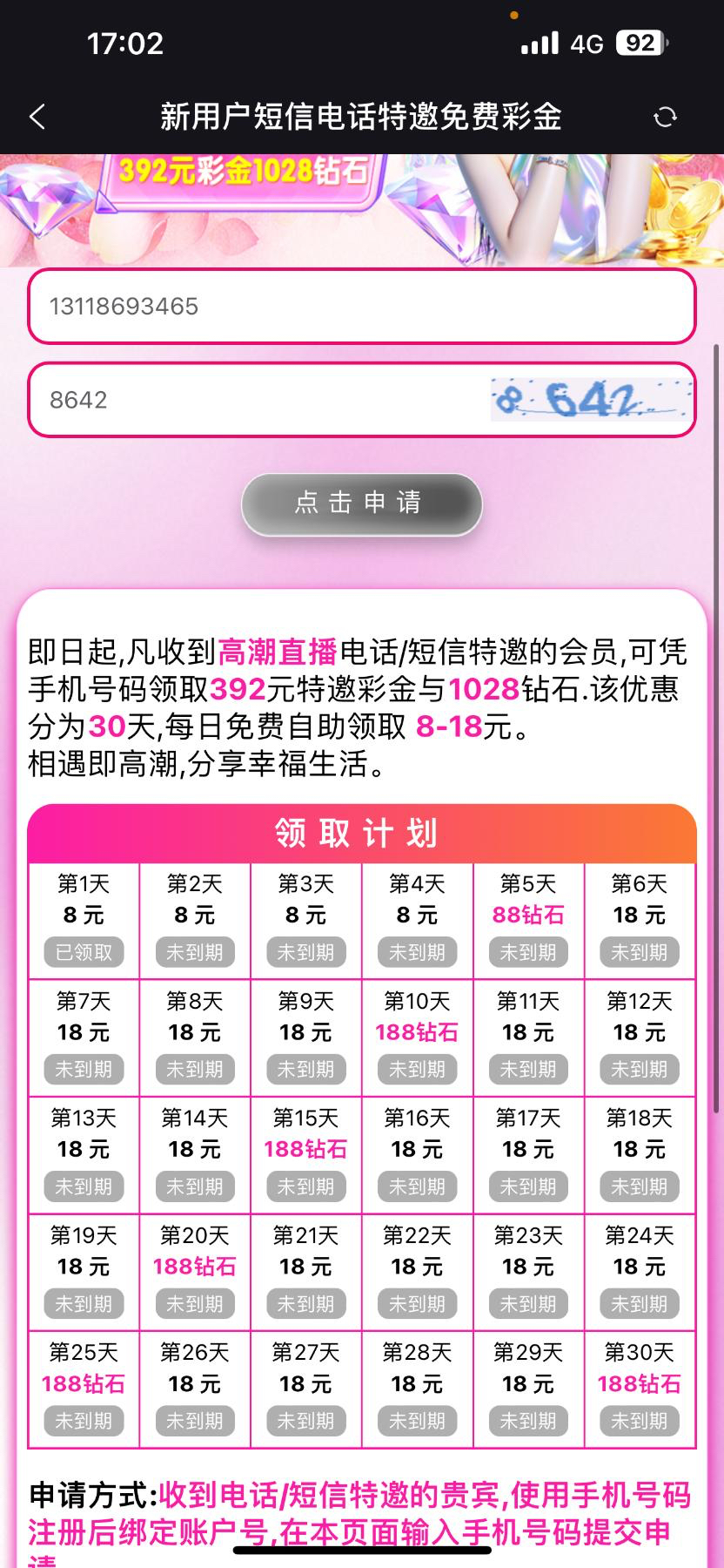 自己看吧,我是接到电话才去的,每天领取8-18 还有钻石可以领,可以领一个月 每天上线申请即可,你们漏接电话都可以去碰一下