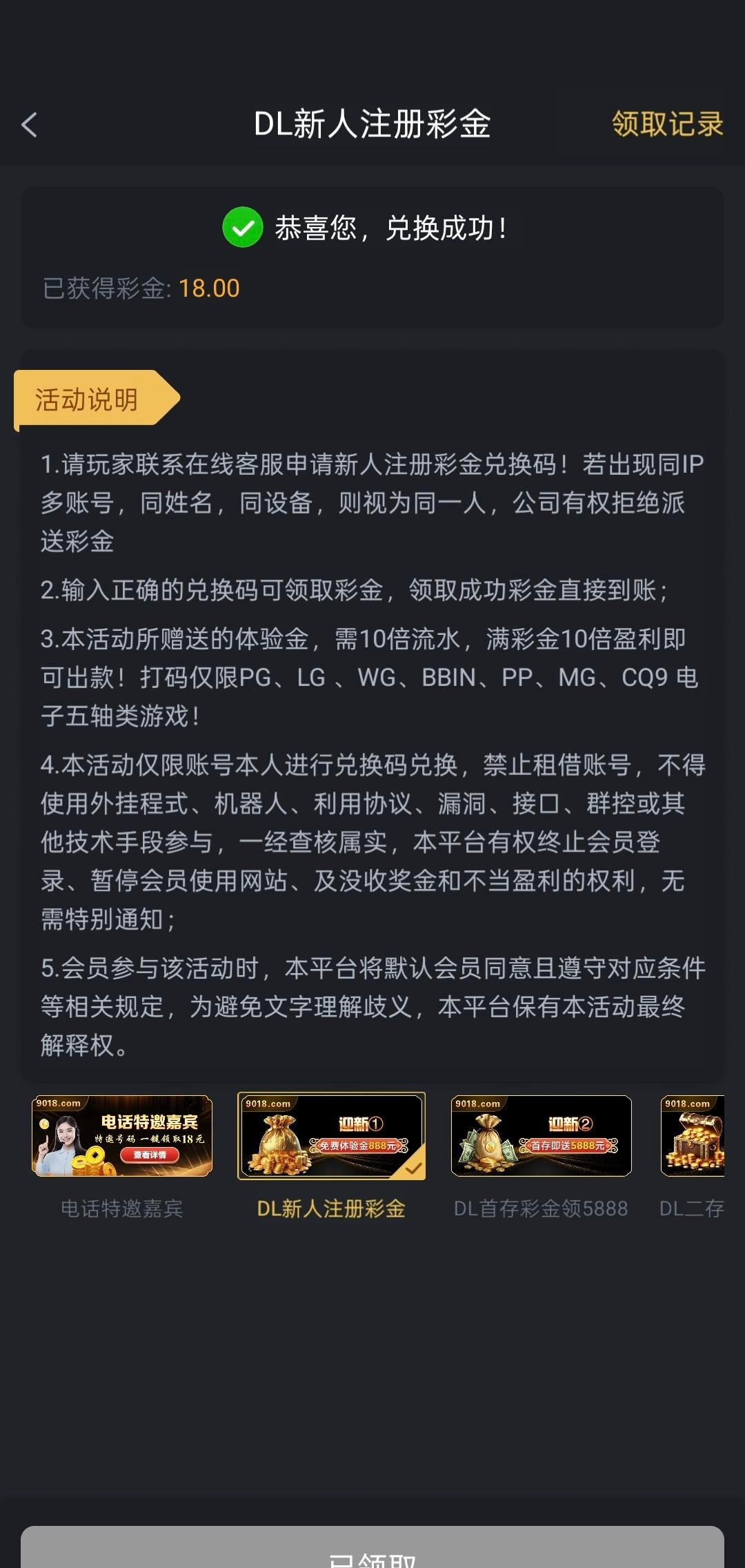 【金沙9018】特邀注册兑换码彩金