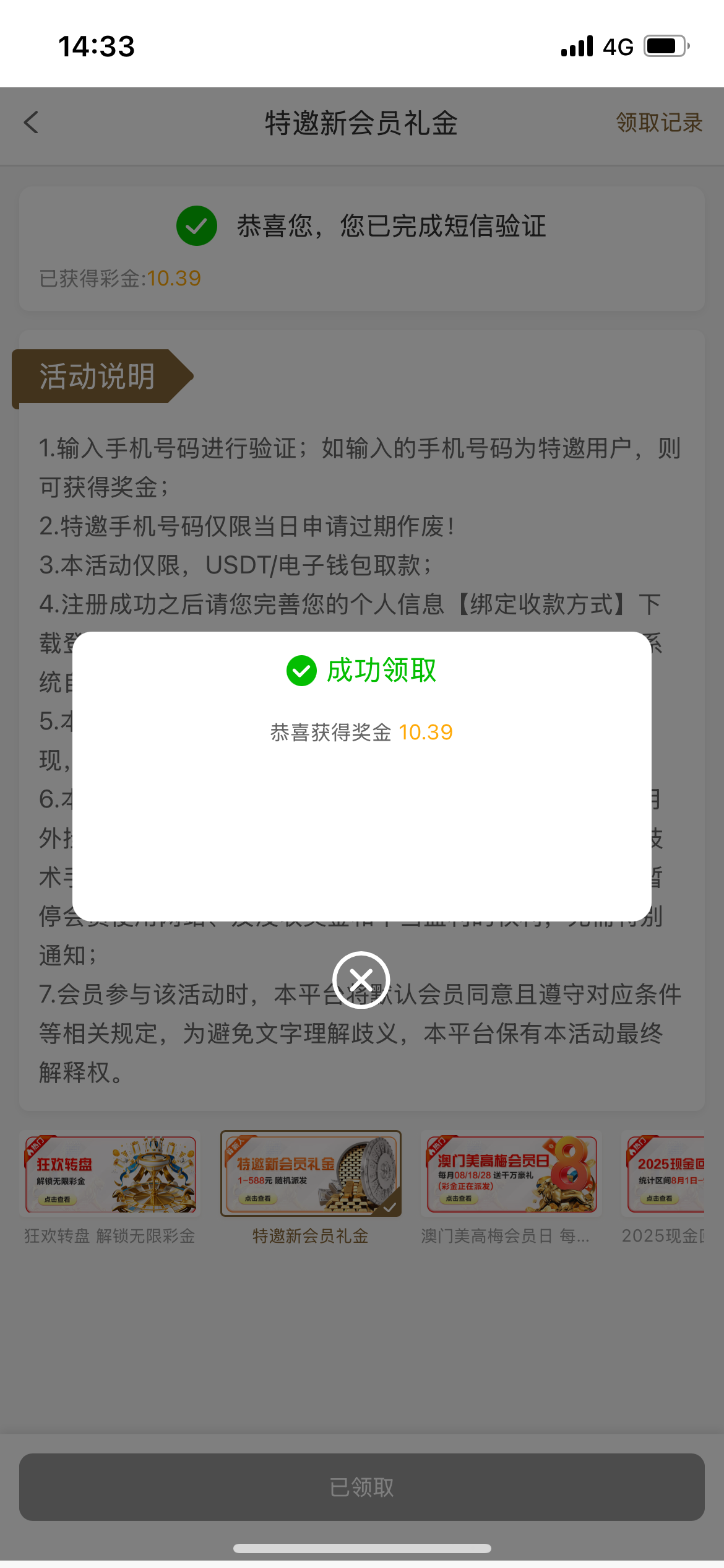 白嫖彩金