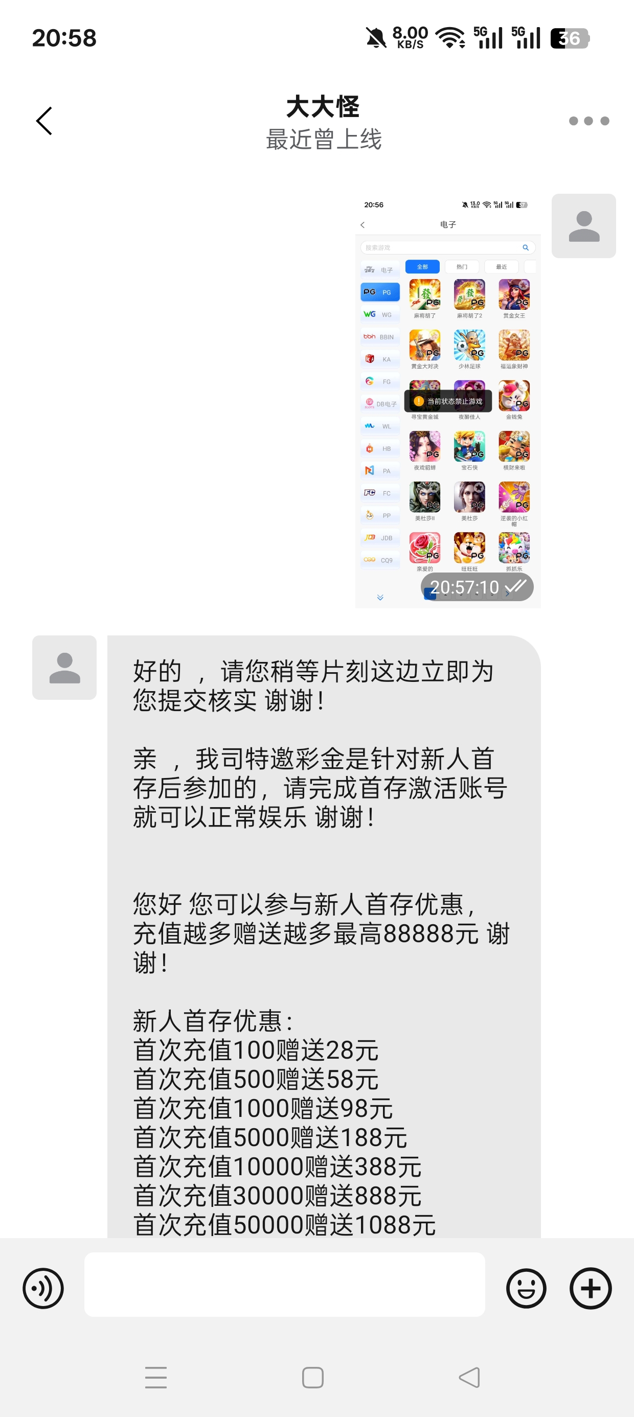 千万不要充值?不充值账号都不能玩任何游戏,58送给你你点游戏都会显示当前状态禁止游戏